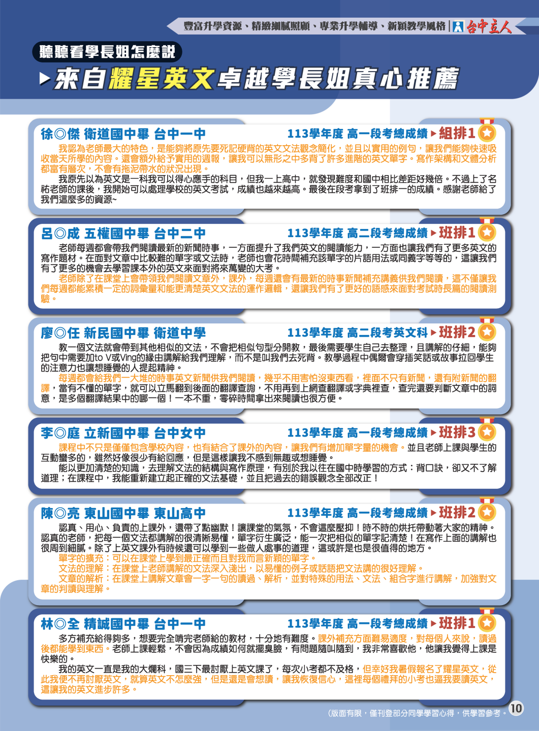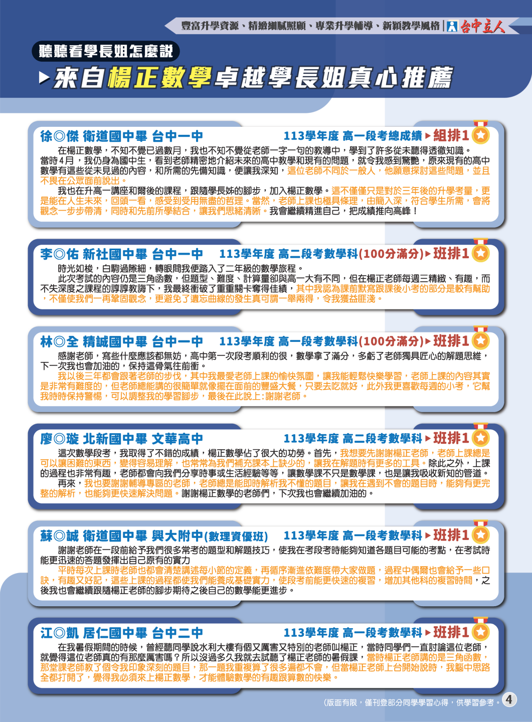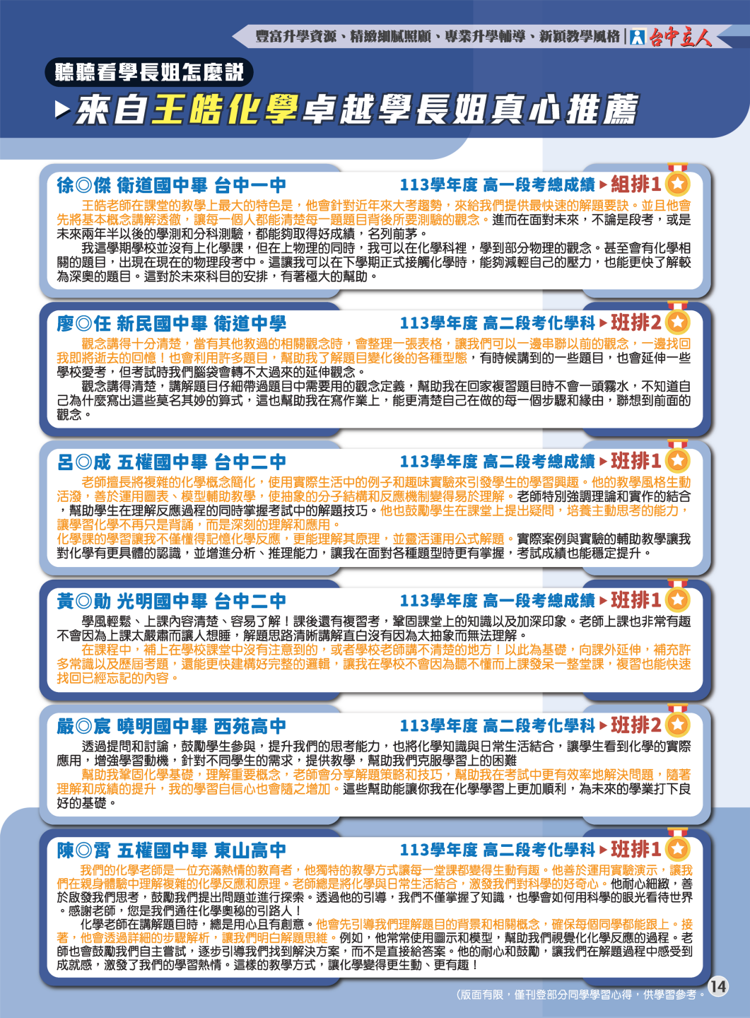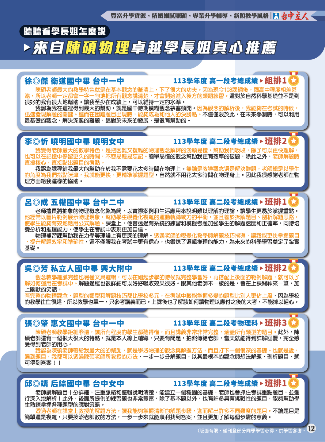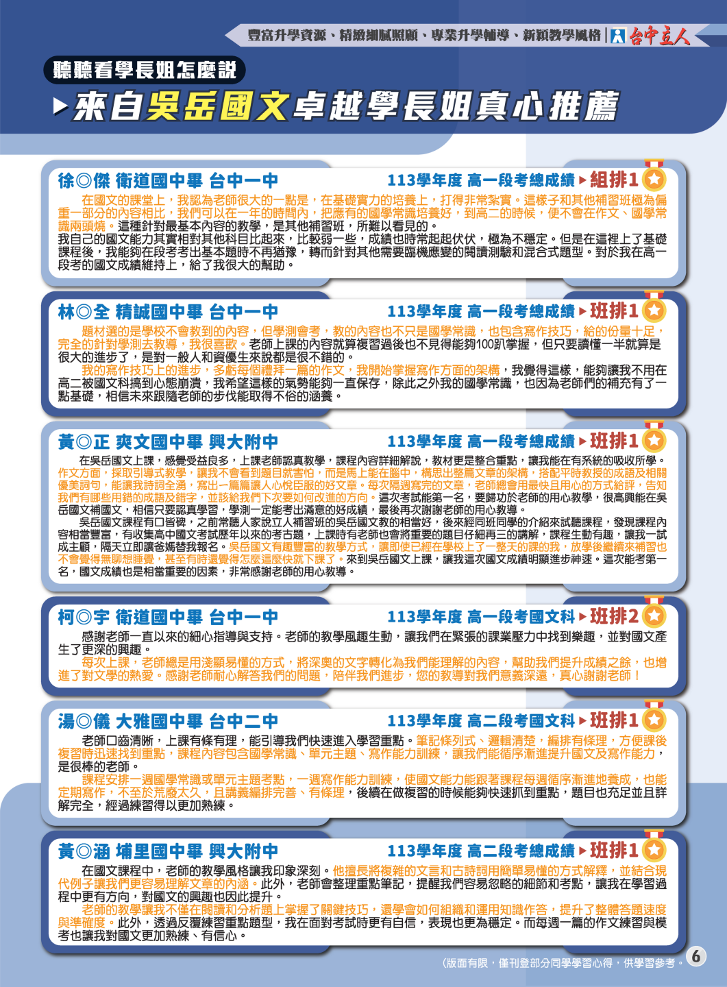 開啟上方區塊 114高一班課程:【114高一】資優超前進度班-台中立人補習班,重考班,高中班,國中班,私中班 課程報名首頁 114高一班課程 瀏覽數:43319 發佈時間:2025-03-16 搜尋 選擇課程分類 升大學重考班高中班課程國中班課程升私中資優班彰化分部課程 送出 課程標題:【114高一】資優超前進度班 上課教室:高中班 課程班級:高中班 報名狀態:報名進行中 課程狀態:啟用中 報名紀錄查詢 可查詢所有報名紀錄限報名者 LINE線上客服 頁面QRcode 點擊Facebook分享及讚按鈕,會開啟新視窗輸入內容 開課時間:2025-06-29 18:00 / 結束時間:2026-01-11 17:00 課程星期:星期一 星期二 星期三 星期四 星期五 星期六 星期日 上課地點:臺中市北區尊賢街9號9樓 課程費用:線上洽詢 課程說明 點我加入台中立人官方LINE 【點擊我進入高一班課程線上預約單】 點我加入台中立人官方LINE 【點擊我進入高一班課程線上預約單】 附件下載 download attachment 報名須知 親愛的家長、同學您好: 歡迎您的加入,有關於本班課程詳細規劃,歡迎連結預約唷 本班會盡快請老師回覆您 【重考班課程】線上預約表單連結 【高中班課程】線上預約表單連結 【國中班課程】線上預約表單連結 【私中班課程】線上預約表單連結 【口試班課程】線上預約表單連結 ★台中立人高中班、重考班諮詢專線:04-22238788 ★班址:台中市北區尊賢街9號9樓(台中一中前水利大樓9樓) ———————————————————— ★台中立人私中班、國中班諮詢專線:04-22269882 ★班址:台中市北區三民路三段94巷2號(台中科大天橋巷內) 台中立人官方Line 台中立人官方Facebook粉絲團 台中立人官方YouTube頻道 台中立人官方Instagram 台中立人官方Threads 前往課程報名 前往下一頁→