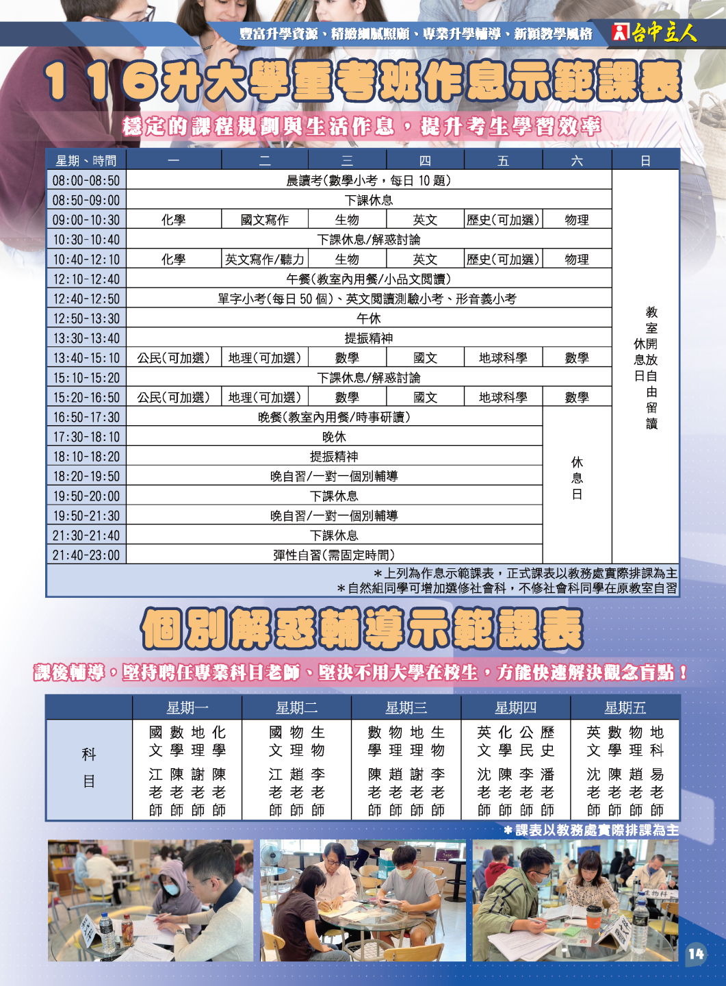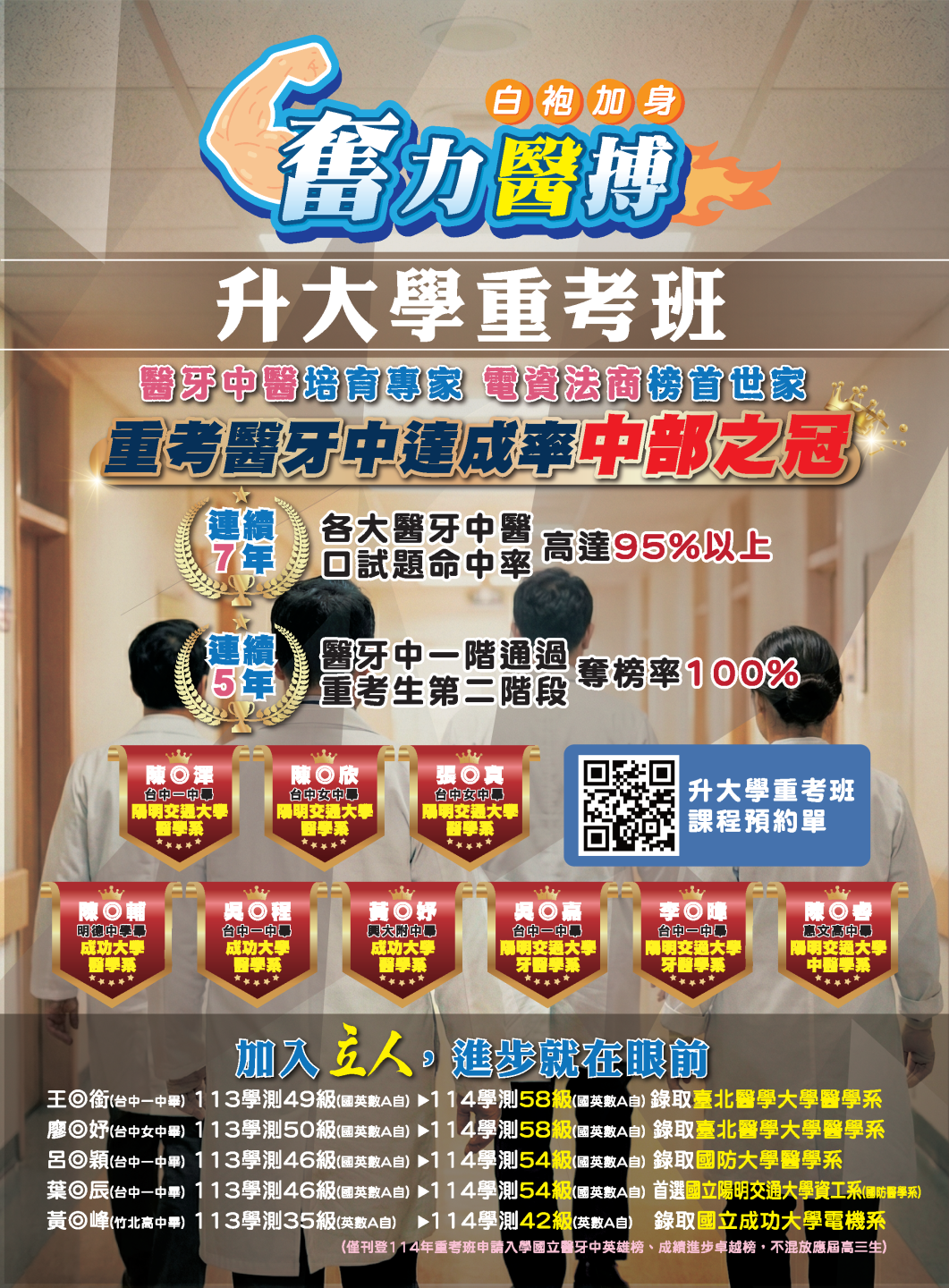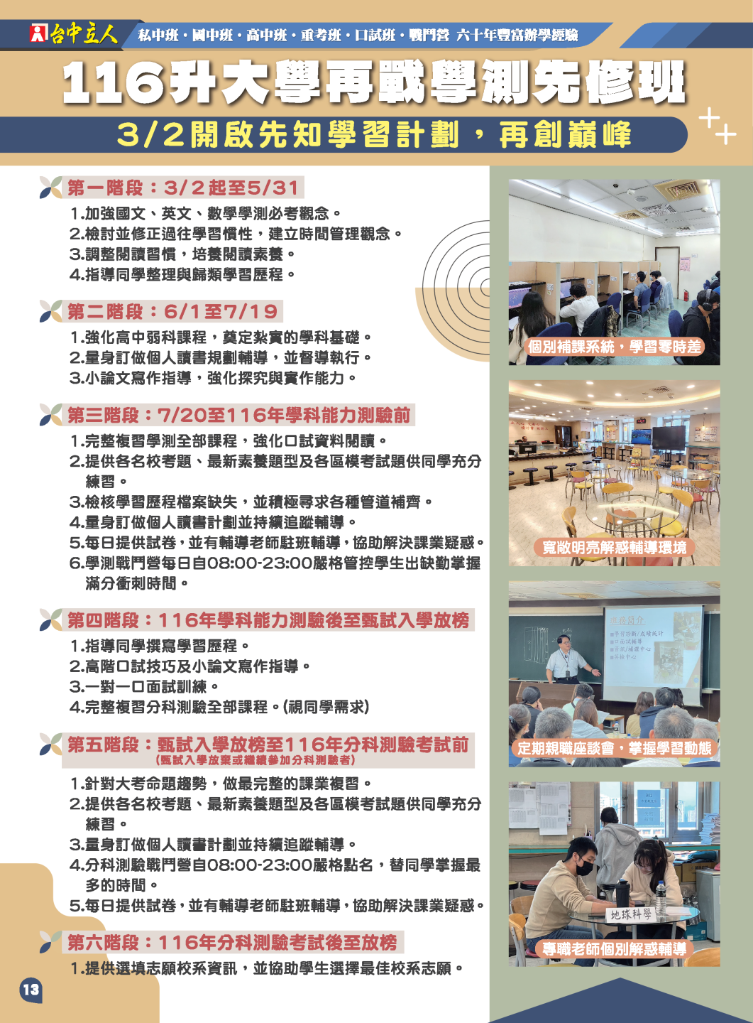 開啟上方區塊 升大學重考班:116升大學再戰學測重考班-台中立人補習班,重考班,高中班,國中班,私中班 課程報名首頁 升大學重考班 瀏覽數:2964 發佈時間:2026-02-12 搜尋 選擇課程分類 升大學重考班高中班課程國中班課程國小班課程彰化分部課程 送出 課程標題:116升大學再戰學測重考班 上課教室:高中班 課程班級:重考班 報名狀態:報名進行中 課程狀態:啟用中 報名紀錄查詢 可查詢所有報名紀錄限報名者 LINE線上客服 頁面QRcode 點擊Facebook分享及讚按鈕,會開啟新視窗輸入內容 開課時間:2026-03-02 08:00 / 結束時間:2027-07-10 21:30 課程星期:星期一 星期二 星期三 星期四 星期五 星期六 上課地點:臺中市北區尊賢街9號9樓 課程費用:線上洽詢 課程說明 台中立人官方LINE 【升大學重考班線上預約單】 台中立人官方LINE 【升大學重考班線上預約單】 課程影片 報名須知 親愛的家長、同學您好: 歡迎您的加入,有關於本班課程詳細規劃,歡迎連結預約唷 本班會盡快請老師回覆您 【重考班課程】線上預約表單連結 【高中班課程】線上預約表單連結 【國中班課程】線上預約表單連結 【私中班課程】線上預約表單連結 ★台中立人水利九樓教室:04-22238788 ★班址:台中市北區尊賢街9號9樓(台中一中前水利大樓9樓) ———————————————————— ★台中立人台中本部教室:04-22269882 ★班址:台中市北區三民路三段94巷2號(台中科大天橋巷內) 台中立人官方Line 台中立人官方Facebook粉絲團 台中立人官方YouTube頻道 台中立人官方Instagram 台中立人官方Threads 前往課程報名 ←前往上一頁
