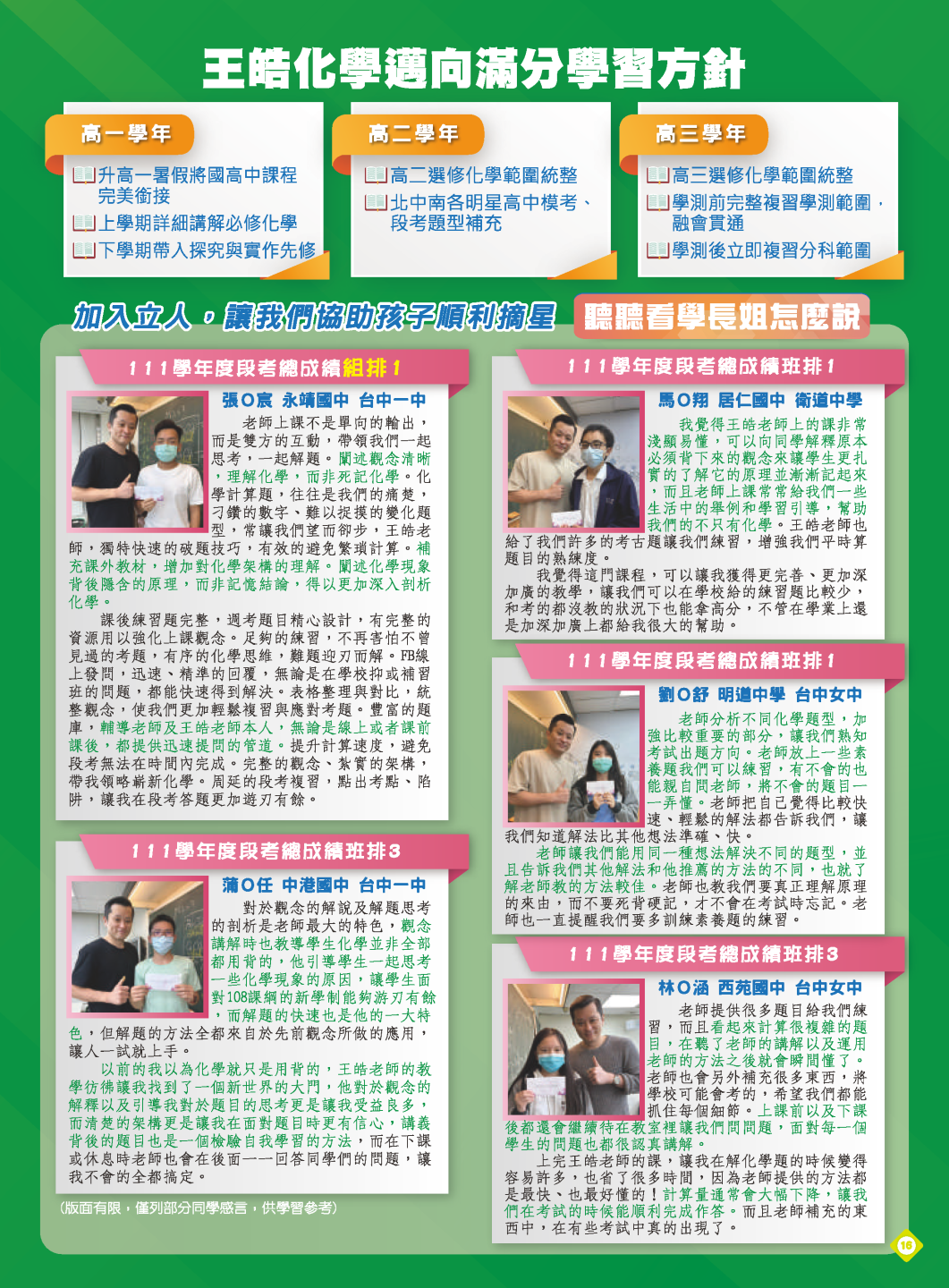 開啟上方區塊 學習心得:111王皓化學段考成績學習心得分享:台中立人補習班 |私中班|國中班|高中班|重考班|戰鬥營|口面試班|落點分析-台中立人補習班,重考班,高中班,國中班,私中班 返回榮譽首頁 學習心得 尊賢分部 熱門榮譽 瀏覽:4344 搜尋 選擇榮譽事項 立人榮譽榜學習心得 選擇發佈單位 台中總部尊賢分部英檢中心彰化分部 選擇發佈會員 管理員Neil hsu立人補習班 選擇榮譽年度 114年 (2025)113年 (2024)112年 (2023)111年 (2022) 送出設定 榮譽事項 學習心得 立人榮譽榜 榮譽事蹟: 111王皓化學段考成績學習心得分享 建立時間: 2023-06-02 23:05 榮譽事項: 學習心得 發佈單位: 尊賢分部 發佈會員: 立人補習班 事項內容: 榮譽標籤: 王皓化學心得分享 分享榮譽: 點擊Facebook分享及讚按鈕,會開啟新視窗輸入內容 相關榮譽事蹟 2025-08-29曾◎◎ 成功國中畢 114年國中會考5A10+榮榜 台中女中...3658 2025-08-16陳◎欣 台中女中畢 114年申請入學錄取 國立陽明交通大學 醫學系...3701 2025-08-15鄭◎晴 衛道中學畢 114年申請入學錄取 中山醫學大學 醫學系...3405 2025-08-14廖◎瓴 明道中學畢 114年申請入學錄取 高雄醫學大學 牙醫學系...3070 2025-08-11葉◎廷 台中一中畢 114年申請入學錄取 中山醫學大學 醫學系...2624 2025-08-10陳◎穎 衛道中學畢 114年申請入學錄取 臺北醫學大學 醫學系...4042 2025-08-09王◎銜 台中一中畢 114年申請入學錄取 臺北醫學大學 醫學系...12393 2025-08-07劉◎維 明道中學畢 114年申請入學錄取 臺北醫學大學 醫學系...3225 2025-08-06張◎溱 台中女中畢 114年申請入學錄取 義守大學 醫學系...3278 2025-08-05葉◎辰 台中一中畢 114年申請入學首選 國立陽明交通大學 資工學系...3382 ←上一則榮譽事項 下一則榮譽事項→
