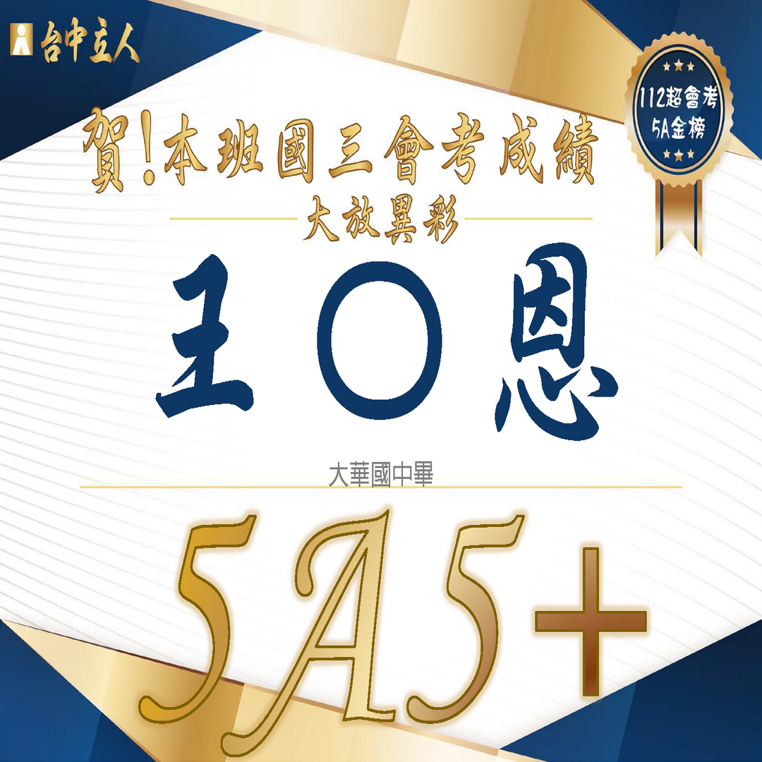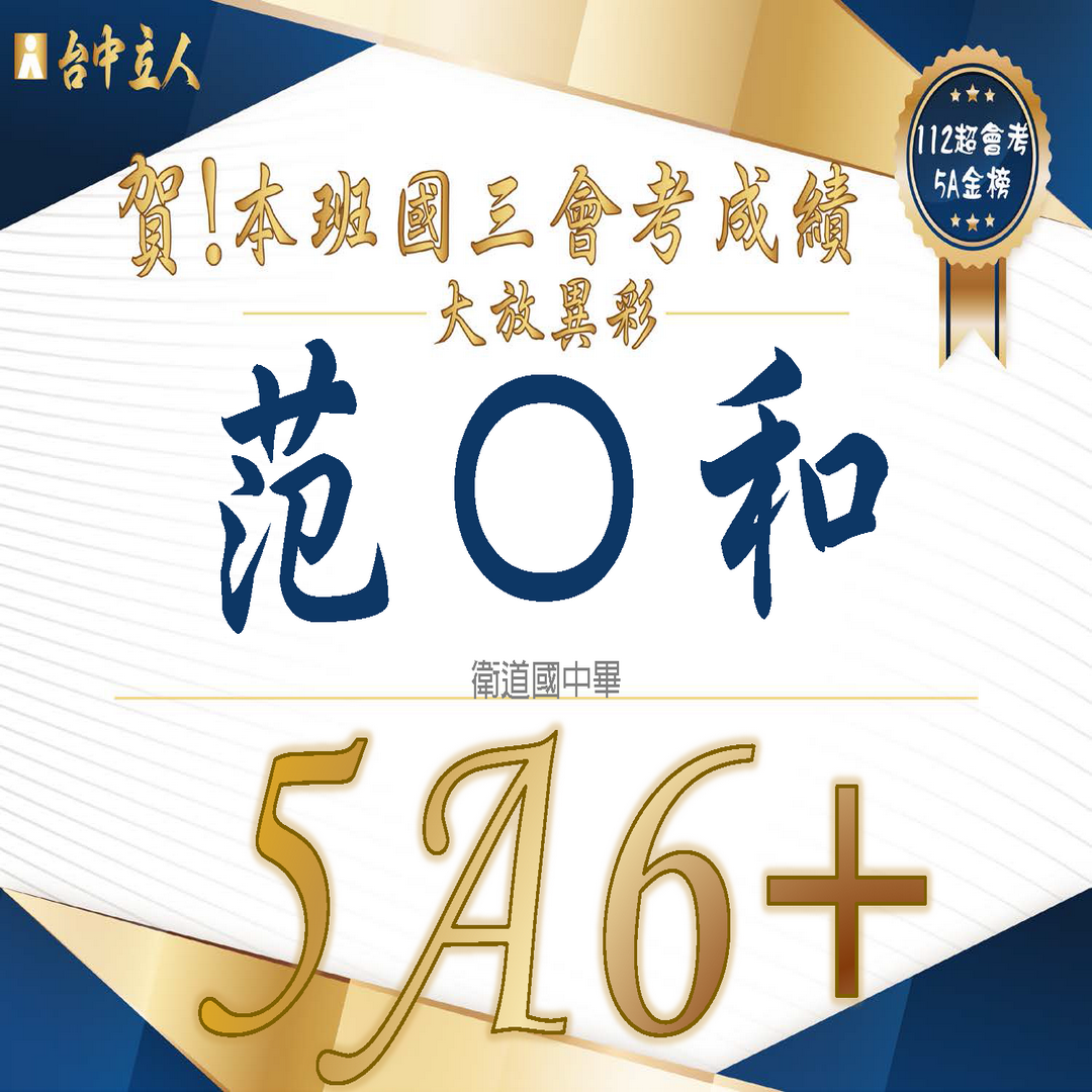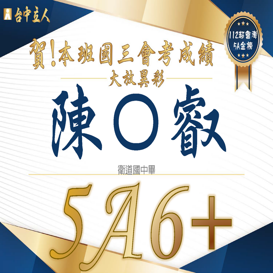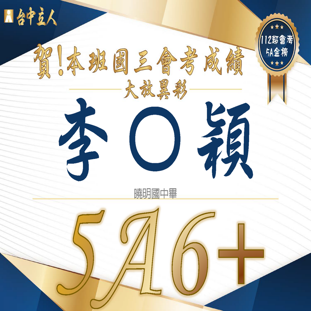 開啟上方區塊 立人榮譽榜:112國三會考班【5A】金榜:台中立人補習班 |私中班|國中班|高中班|重考班|戰鬥營|口面試班|落點分析-台中立人補習班,重考班,高中班,國中班,私中班 返回榮譽首頁 立人榮譽榜 台中總部 熱門榮譽 瀏覽:7086 搜尋 選擇榮譽事項 立人榮譽榜學習心得 選擇發佈單位 台中總部尊賢分部英檢中心彰化分部 選擇發佈會員 管理員Neil hsu立人補習班 選擇榮譽年度 114年 (2025)113年 (2024)112年 (2023)111年 (2022) 送出設定 榮譽事項 學習心得 立人榮譽榜 榮譽事蹟: 112國三會考班【5A】金榜 建立時間: 2023-06-15 01:26 榮譽事項: 立人榮譽榜 發佈單位: 台中總部 發佈會員: 立人補習班 事項內容: 榮譽標籤: 112會考5A 分享榮譽: 點擊Facebook分享及讚按鈕,會開啟新視窗輸入內容 相關榮譽事蹟 2025-11-12台中立人學子 114(上)第一次段考榮耀金榜...887 2025-08-23賀!114升大學國立醫牙、台大電資法商榮耀金榜...1089 2025-07-03賀!114會考班5A榮耀金榜...3455 2025-05-07賀!113會考衝刺班學子,中投區模考表現優異5A金榜!...3873 2024-12-31台中立人學子 113(上)第二次段考成績卓越榜...4614 2024-11-11台中立人學子 113(上)第一次段考成績卓越榜...7270 2024-08-22呂◎峰 明道中學畢 113年申請入學錄取 國立陽明交通大學 醫學系...4148 2024-08-22林◎甫 台中一中畢 113年登記分發錄取 國立陽明交通大學 牙醫學系...5137 2024-08-03吳◎緯 113年明道中學重考最高分 登記分發錄取 國立成功大學 醫學...4560 2024-08-02鍾◎潔 113年曉明女中重考進步王 登記分發錄取 國立陽明交通大學 ...4513 ←上一則榮譽事項 下一則榮譽事項→