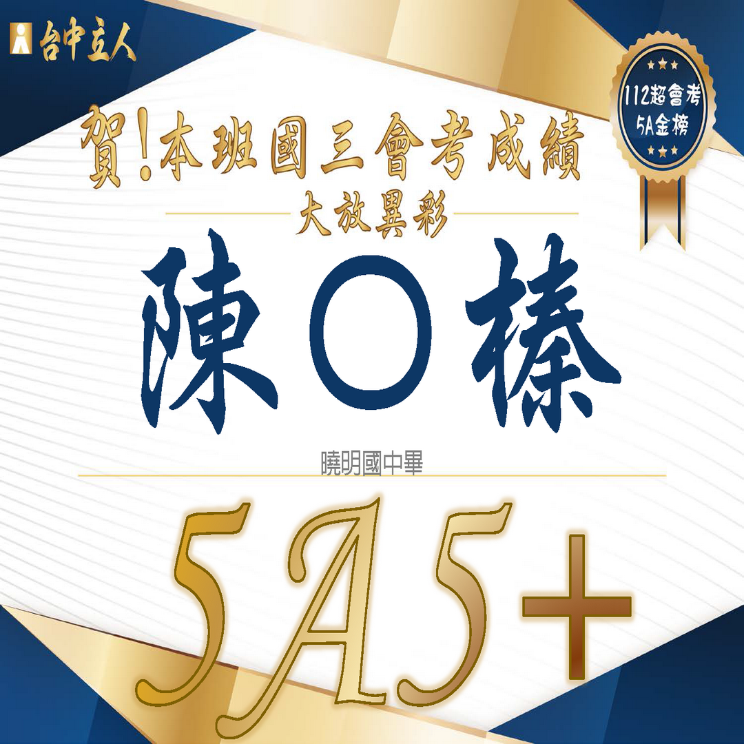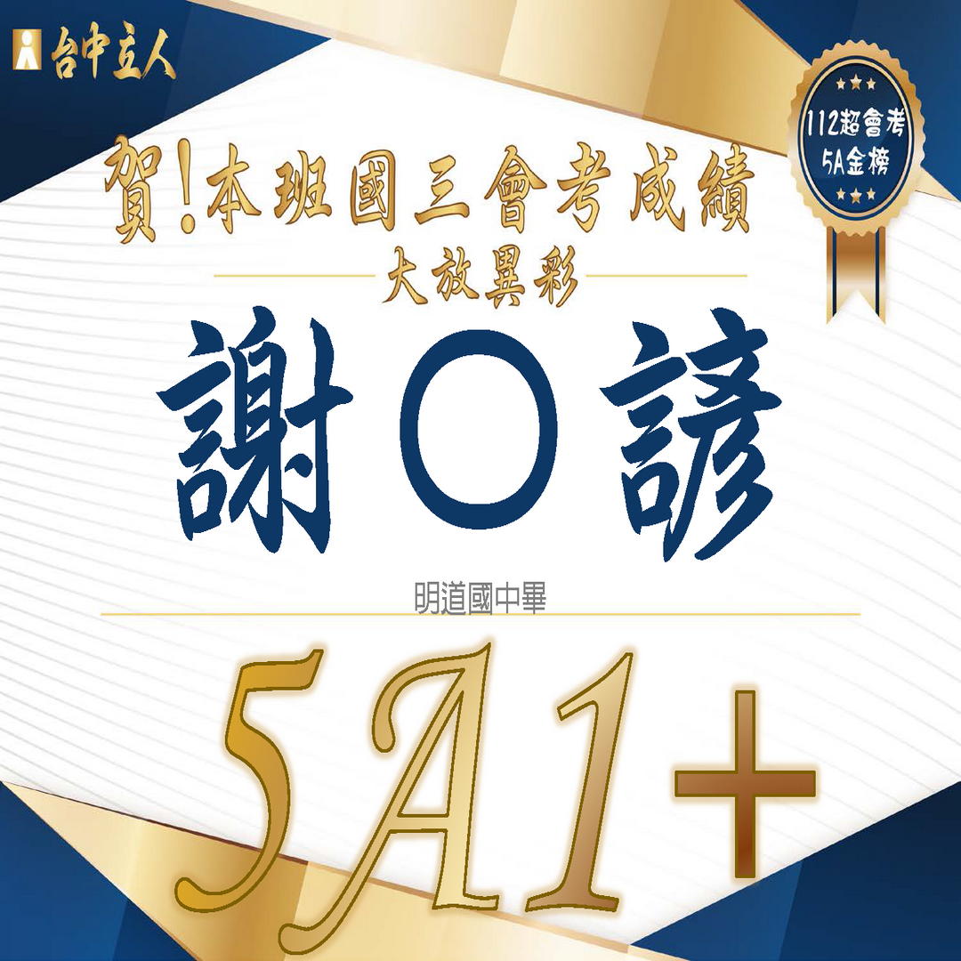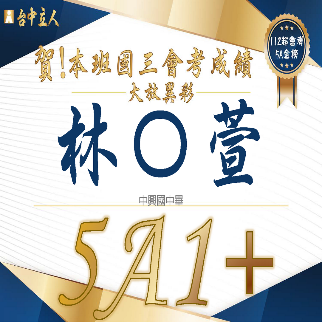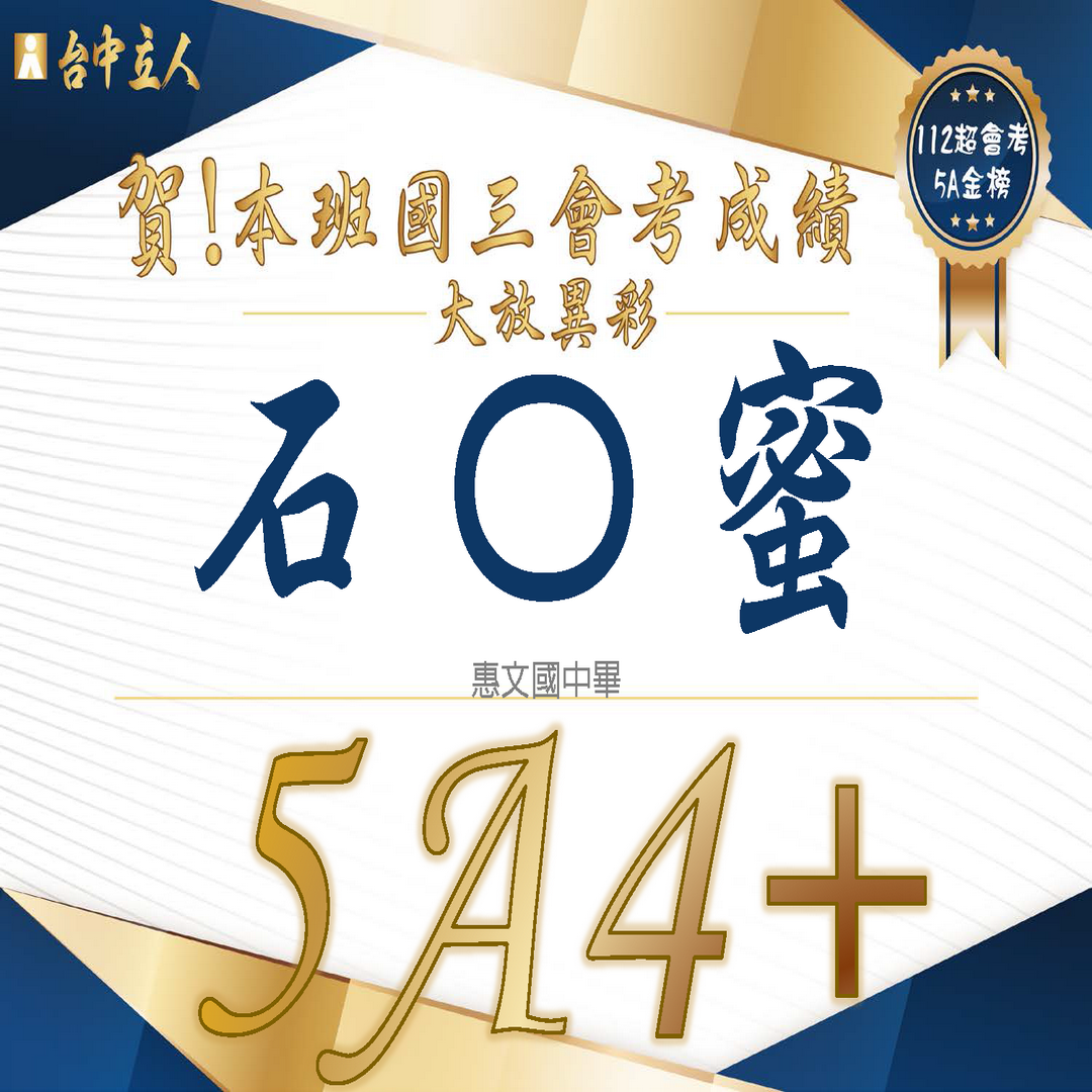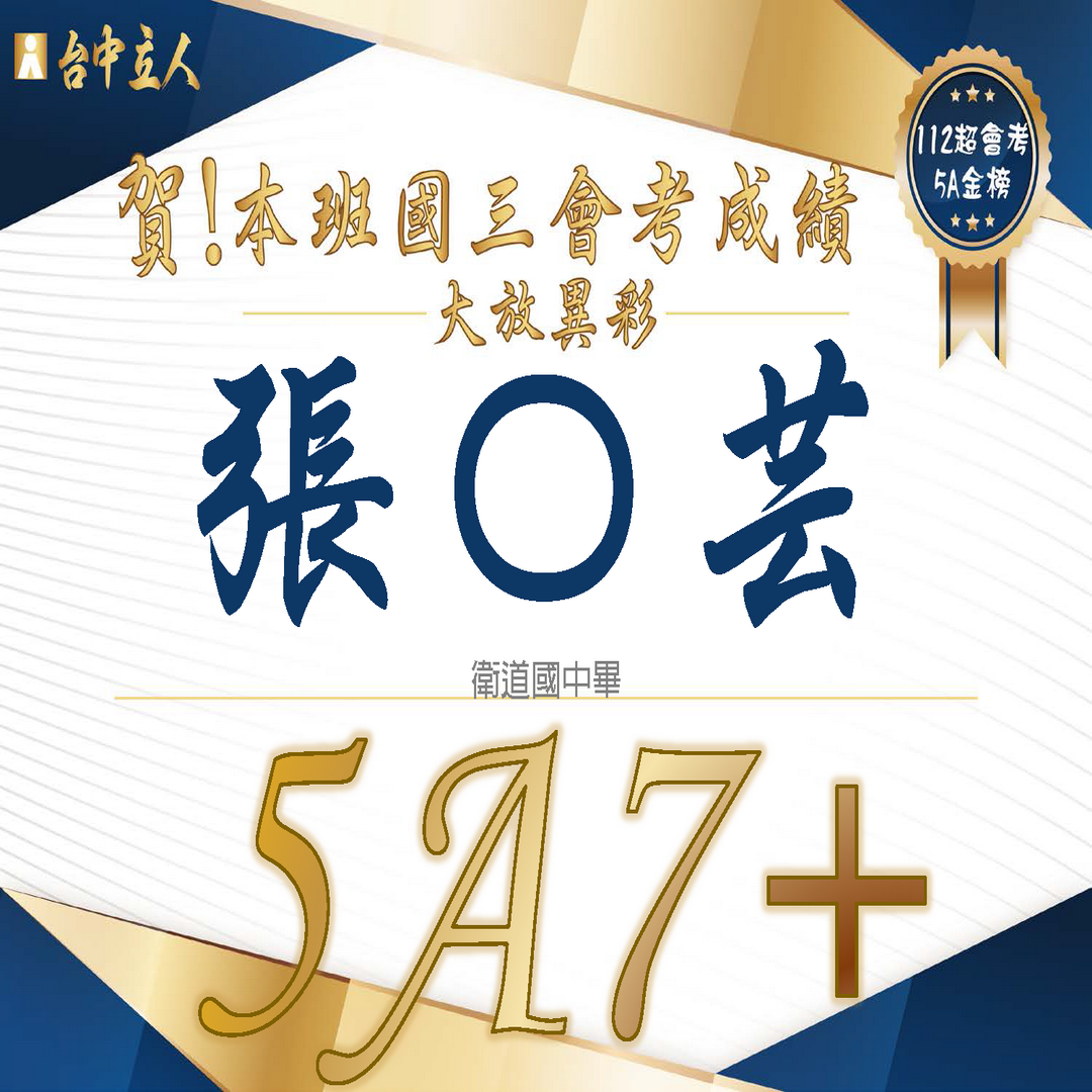 開啟上方區塊 立人榮譽榜:112國三會考班【5A】金榜:台中立人補習班 |私中班|國中班|高中班|重考班|戰鬥營|口面試班|落點分析-台中立人補習班,重考班,高中班,國中班,私中班 返回榮譽首頁 立人榮譽榜 台中總部 熱門榮譽 瀏覽:7086 搜尋 選擇榮譽事項 立人榮譽榜學習心得 選擇發佈單位 台中總部尊賢分部英檢中心彰化分部 選擇發佈會員 管理員Neil hsu立人補習班 選擇榮譽年度 114年 (2025)113年 (2024)112年 (2023)111年 (2022) 送出設定 榮譽事項 學習心得 立人榮譽榜 榮譽事蹟: 112國三會考班【5A】金榜 建立時間: 2023-06-15 01:26 榮譽事項: 立人榮譽榜 發佈單位: 台中總部 發佈會員: 立人補習班 事項內容: 榮譽標籤: 112會考5A 分享榮譽: 點擊Facebook分享及讚按鈕,會開啟新視窗輸入內容 相關榮譽事蹟 2025-11-12台中立人學子 114(上)第一次段考榮耀金榜...887 2025-08-23賀!114升大學國立醫牙、台大電資法商榮耀金榜...1089 2025-07-03賀!114會考班5A榮耀金榜...3455 2025-05-07賀!113會考衝刺班學子,中投區模考表現優異5A金榜!...3873 2024-12-31台中立人學子 113(上)第二次段考成績卓越榜...4614 2024-11-11台中立人學子 113(上)第一次段考成績卓越榜...7270 2024-08-22呂◎峰 明道中學畢 113年申請入學錄取 國立陽明交通大學 醫學系...4148 2024-08-22林◎甫 台中一中畢 113年登記分發錄取 國立陽明交通大學 牙醫學系...5137 2024-08-03吳◎緯 113年明道中學重考最高分 登記分發錄取 國立成功大學 醫學...4560 2024-08-02鍾◎潔 113年曉明女中重考進步王 登記分發錄取 國立陽明交通大學 ...4513 ←上一則榮譽事項 下一則榮譽事項→