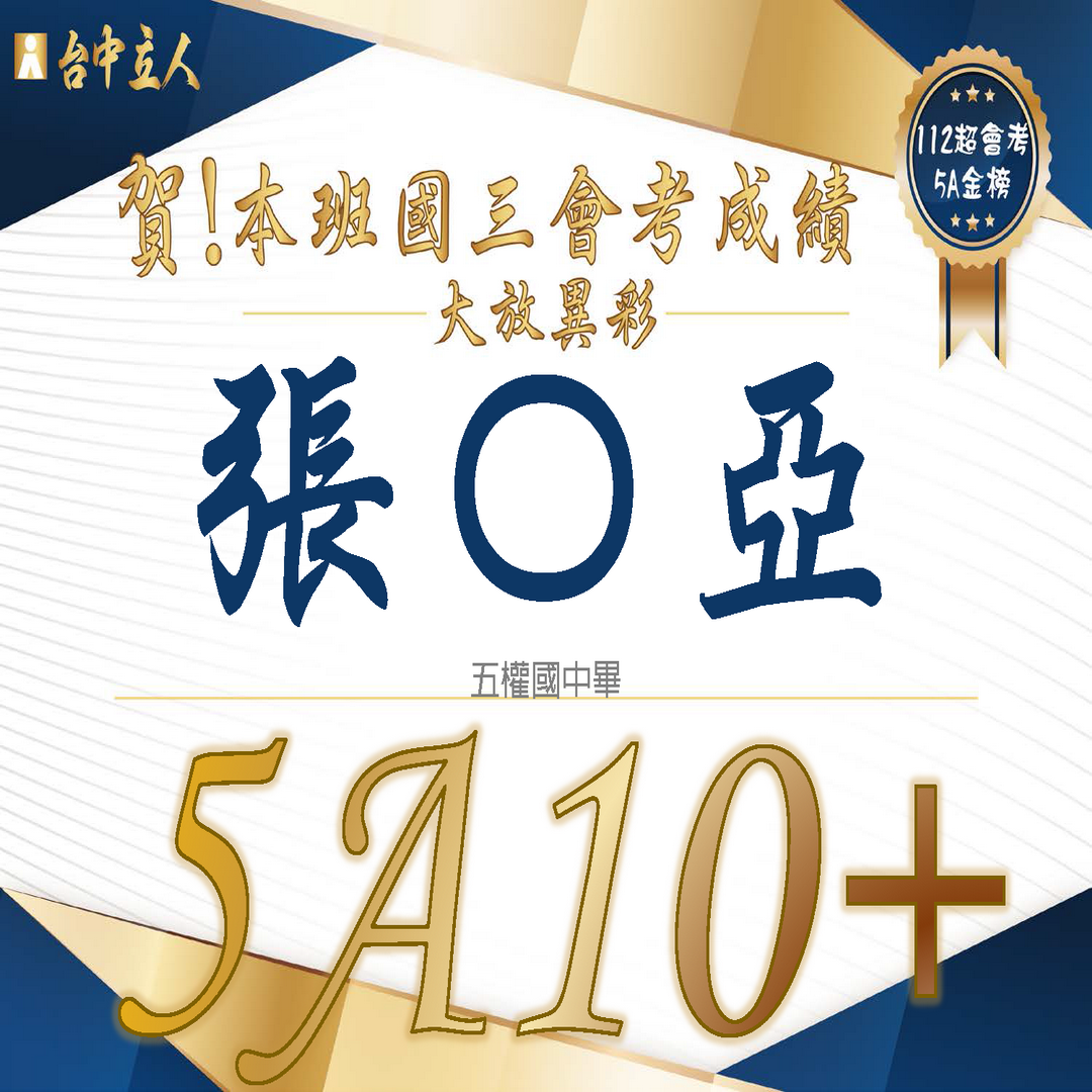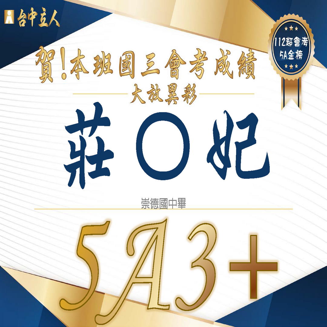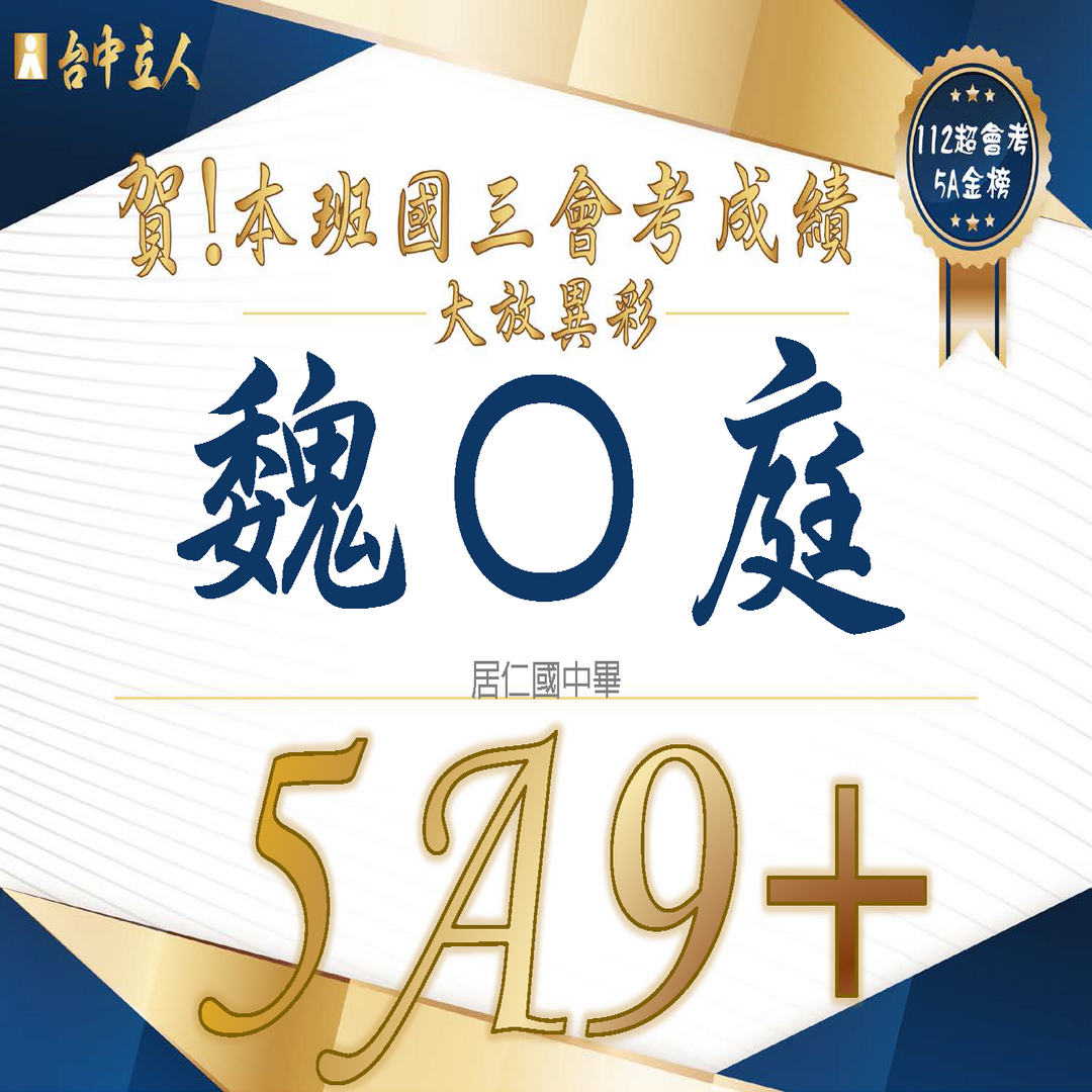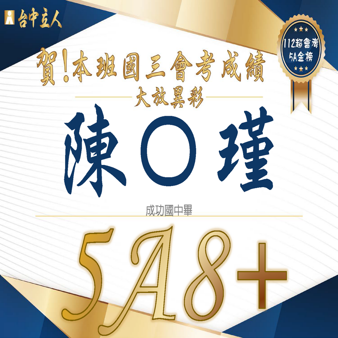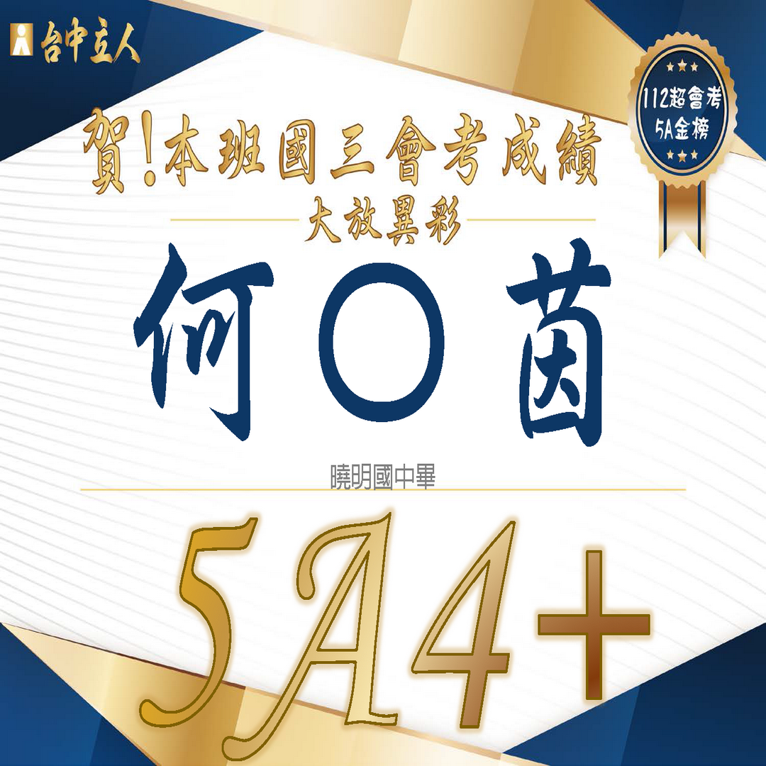 開啟上方區塊 立人榮譽榜:112國三會考班【5A】金榜:台中立人補習班 |私中班|國中班|高中班|重考班|戰鬥營|口面試班|落點分析-台中立人補習班,重考班,高中班,國中班,私中班 返回榮譽首頁 立人榮譽榜 台中總部 熱門榮譽 瀏覽:7086 搜尋 選擇榮譽事項 立人榮譽榜學習心得 選擇發佈單位 台中總部尊賢分部英檢中心彰化分部 選擇發佈會員 管理員Neil hsu立人補習班 選擇榮譽年度 114年 (2025)113年 (2024)112年 (2023)111年 (2022) 送出設定 榮譽事項 學習心得 立人榮譽榜 榮譽事蹟: 112國三會考班【5A】金榜 建立時間: 2023-06-15 01:26 榮譽事項: 立人榮譽榜 發佈單位: 台中總部 發佈會員: 立人補習班 事項內容: 榮譽標籤: 112會考5A 分享榮譽: 點擊Facebook分享及讚按鈕,會開啟新視窗輸入內容 相關榮譽事蹟 2025-11-12台中立人學子 114(上)第一次段考榮耀金榜...887 2025-08-23賀!114升大學國立醫牙、台大電資法商榮耀金榜...1089 2025-07-03賀!114會考班5A榮耀金榜...3455 2025-05-07賀!113會考衝刺班學子,中投區模考表現優異5A金榜!...3873 2024-12-31台中立人學子 113(上)第二次段考成績卓越榜...4614 2024-11-11台中立人學子 113(上)第一次段考成績卓越榜...7270 2024-08-22呂◎峰 明道中學畢 113年申請入學錄取 國立陽明交通大學 醫學系...4148 2024-08-22林◎甫 台中一中畢 113年登記分發錄取 國立陽明交通大學 牙醫學系...5137 2024-08-03吳◎緯 113年明道中學重考最高分 登記分發錄取 國立成功大學 醫學...4560 2024-08-02鍾◎潔 113年曉明女中重考進步王 登記分發錄取 國立陽明交通大學 ...4513 ←上一則榮譽事項 下一則榮譽事項→